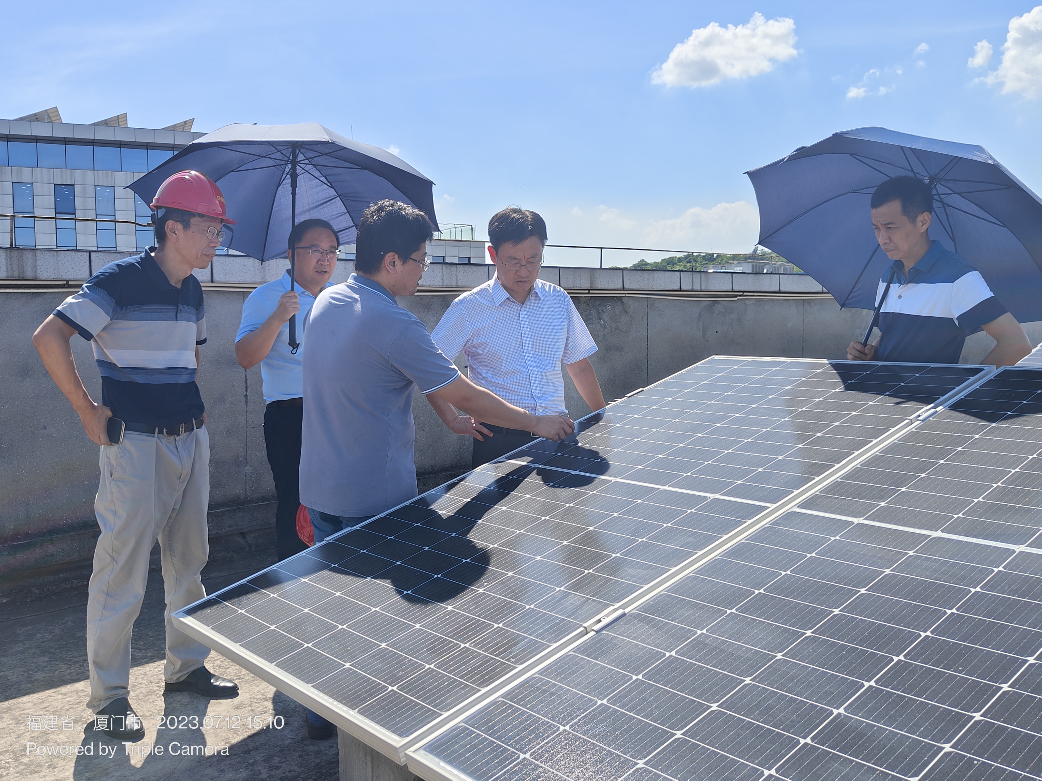 7月12日,海發(fā)環(huán)保能源公司投資建設(shè)的萬泰滄海868.14kw分布式光伏電站在炎炎烈日下最高實時發(fā)電功率接近706kw。在環(huán)保能源公司相關(guān)領(lǐng)導陪同下,海發(fā)集團黨委書記、董事長謝元榮帶隊,集團黨委副書記、主持工作副總經(jīng)理呂玉寶,集團黨委委員、副總經(jīng)理、環(huán)能公司分管領(lǐng)導邱向明以及集團投資管理部、建設(shè)管理部等相關(guān)部門陪同參加調(diào)研,深入環(huán)保能源公司萬泰滄海分布式光伏電站現(xiàn)場一線,實地考察光伏電站建設(shè)成效及設(shè)備現(xiàn)場運行情況,了解調(diào)研環(huán)保能源公司在以分布式光伏為主的新能源業(yè)務(wù)拓展、有關(guān)項目投資運營和運維管理等有關(guān)方面情況。